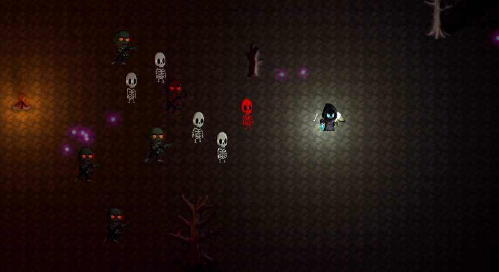 A small game me and some friends made for Scream Jam 2025, you navigate around the map in the dark losing light perpetually, if you light runs out the game is over, you have to fight monster and collect their souls to increase the light in your lantern, allowing you to light campfire and find gravestones that provide other upgrades. For this game my contribution involved most of the code for the enemies, excluding the pathfinding, as well as a lot of the players upgrades for their weapon, i.e. burn, freeze, explode.